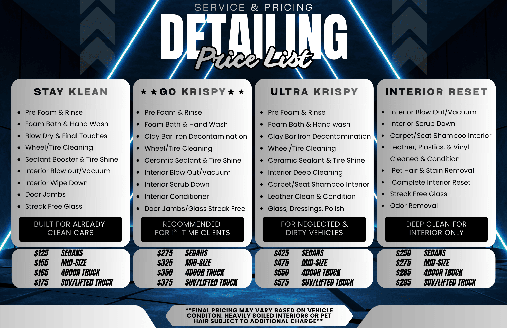 We wash, wax, vacuum, and shampoo all types of vehicles